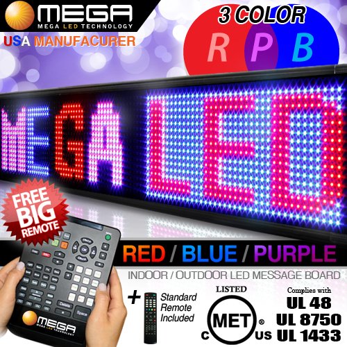 Size: 69"(w) x 19"(h) x 3"(d) Pixel Pitch: 26mm Density Color: 3 Color (Red, Blue, Purple) Item weight: 30 lbs Max. Font size: 12"(h) Brightness: 6000 - 7000 Nits Lifespan: 100,000 hours(~ 10 yrs) Low energy consumption. Waterproof: Yes Operating Temp.: -22F ~ 122F Input power: AC 110V Energy consumption: 23w~76w Operation: Infra-red remote controller Made for outdoor usage 1 or 2 line messages. Tons of effects and effects integrated on the sign. [PRODUCT DESCRIPTION] -Real Time Clock & Date -Stop-watch -Multi Language -Animating Icons -8 Fonts -Special Characters -Symbols -Icons -Timer On/ Off -5 Min Installation Package -Images -Neon Tubing Effect -Adjustable 10 Level Brightness -Adjustable Message Display Speed -Save Messages, Display Selectively -Create Your up to 99 Messages -Low Energy consumption [TRANSITION EFFECTS] -AUTOMATIC -DRAMA -GATHERING -TORNADO -TO APPEAR -BEAM -TO PASS -SCROLL -HURRICANE -LENS -BY COLOR *5 Min. Easy Installation Kit Included. *Waterproof treated by High Quality Dow Corning silicone *Limited 3 Year WarrantyFeatures You search for the best analysis LED Signs 69" X 19" Tri-color Bright Digital Programmable Scrolling Message Display / Business Tools? Read customer reviews, features, specs, descriptions, check price update and more enjoyable for LED Signs 69" X 19" Tri-color Bright Digital Programmable Scrolling Message Display / Business Tools product reviews!!some tips • If you are interested in buying LED Signs 69" X 19" Tri-color Bright Digital Programmable Scrolling Message Display / Business Tools can try to find a full description and details of the product. • Read reviews will give you a very complete understanding of the pros and cons of the product you need. • You can try to find comparable items and sometimes helps in the selection of purchase. • You can try to find and view the discussions. • Look for details and delivery information for each product. • You can try to find the features of the product. • In general, as far as I know the customers who bought products LED Signs 69" X 19" Tri-color Bright Digital Programmable Scrolling Message Display / Business Tools either online were also interested in reviews, cheap prices and smaller shops and stores, shipping, gift ideas, the city offers, sales, online coupons , news, and daily holiday deals, bargain, best buy products, including special offers LED Signs 69" X 19" Tri-color Bright Digital Programmable Scrolling Message Display / Business Tools best deals, discount coupons, best deals and hot, great deals, last minute deals and so on ...additional information |