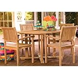Are you looking for the best review for Oxford Garden Warwick 4-person Wood Patio Dining Set With Stacking Chairs? Read customer review, features, specifications, description, check prices update and more satisfying for Oxford Garden Warwick 4-person Wood Patio Dining Set With Stacking Chairs product reviews! Oxford Garden Warwick 4-Person Wood Patio Dining Set With Stacking Chairs. WSCH4 + RD48TA. Wood Dining Sets. This Warwick 4-person dining set features the crisp look of Shorea wood, and the signature designs of the Warwick and Classic collections. Like teak, Shorea will outlast softer, inferior wood types, and natural oils help it resist the elements. The tabletop features a slatted design that prevents water from pooling on the surface. The natural finish can be maintained simply by applying a seasonal coat of teak oil. Mortise and tenon construction is high quality joinery and tight-fitting tenons that help your patio furniture last. The Classic table includes an umbrella hole and plug, giving you the option to add a splash of shade to your patio. The Warwick dining chairs feature a relaxed posture which caters to your comfort, and the stackable design makes it easy to conserve patio space during storage. Stainless steel, rust resistant hardware adds to the durability of this set. Dimensions (in inches): Dining Table: 47 1/4 W x 47 1/4 D x 29 H. Armchair: 23 W x 23 D x 35 H; Seat Height: 17. Table Weight: 75 lbs. Armchair Weight: 28 lbs.
