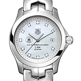 | ✚✚✚ US Air Force Academy TAG Heuer Watch - Women's Link with Mother of Pearl Air Force Academy TAG Heuer women's Link watch with USAFA crest on dazzling diamond dial; "U.S. Air Force Academy" is written underneath. Elegant mother of pearl dial set with 11 Top Wesselton diamonds. Polished steel bracelet with double security clasp. Case stamped from a block of stainless steel (27 mm diameter.) Polished and fixed bezel. Screw-in crown and caseback for water resistance to 200 meters. Swiss-made Quartz movement. Scratch-resistant sapphire crystal. Unique TAG Heuer presentation box. TAG Heuer international two-year warranty.