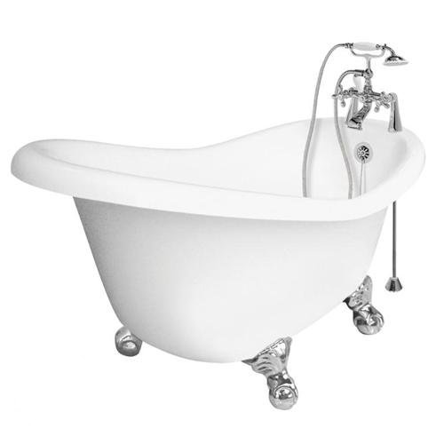 American Bath Factory T010D-CH-R Ascot Champagne Massage Bathtub Faucet Package 1 in White?American Bath Factory T010D-CH-R Ascot Champagne Massage Bathtub Faucet Package 1 For almost three decades, American Bath Factory has been America's first choice for Old World, Vintage and Retro bath products. Their vision is to make high quality bathtubs, faucets, shower systems, and furniture pieces that are easy to install and enjoyable to use. Their pursuit of that vision has helped them to create a line of elegant and innovative bath products that perform as beautifully as they look, and a long list of satisfied customers! Ascot, Bathtub, Slipper, Small Ball and Claw Feet, AcraStone, American Bath Factory American Bath Factory Ascot T010D-CH-R AcraStone Slipper Bathtub in White interior/exterior finish. Bathtub Package comes complete with matching Small Ball and Claw Feet, Champagne Massage, 90 Series Faucet, Hand Shower & Metal Cross Handles, Waste & Overflow and Supply Lines in Chrome. American Bath Factory T010D-CH-R Ascot Champagne Massage Bathtub Faucet Package 1 Features: 60"L x 31 1/2"W x 30"H 40 gallon capacity Acrastone Bathtub Construction Predrilled Overflow and Drain holes Chrome Small Ball and Claw Feet 90 Series Faucet in Chrome Finish Lifetime Warranty Made in U.S.A. Style: Slipper Feet Style: Small Ball and Claw Feet Faucet Type: 90 Series Faucet, Hand Shower & Metal Cross Handles Faucet Finish: Chrome