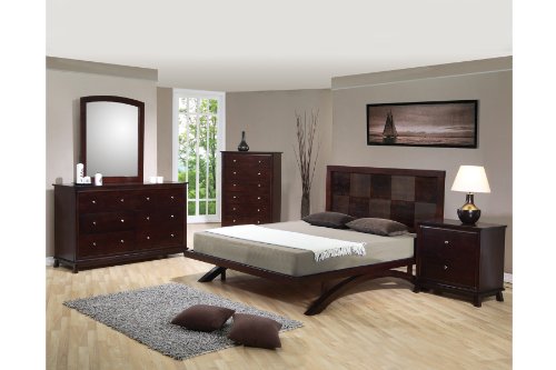 Bedroom Collection Nova Walnut Finish 5 Piece Set Dresser Chest Bed