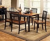 | ✚✚✚ Steve Silver Branson 6 Piece 50x36 Dining Room Set in Rich Black Gather all around the table, the Branson Dining Table with 12" Extension Leaf (Black/Cherry) comfortably seats six people so you get all the family together. This solid wood table is featured in a black and cherry finish. What's included: Dining Table (1), Side Chair (4), Bench (1).