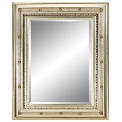 #92006-S Features: -Wall mirror.-Sleek beveled mirror.-Hinges on back to be hung either vertical or horizontal.-Contemporary design.-Offers an intricate design surrounded by a frame within a frame style.-Carved details enhance the geometric look of this piece which will make it a highlight in any room of the house. Construction: -Solid wood frame construction. Color/Finish: -Silver finish.-Hand detailed finish. Dimensions: -Mirror dimensions: 48'' H x 36'' W.-Frame dimension: 9.75'' Width.-Overall dimensions: 67.75'' H x 55.5'' W x 2.25'' D. Warranty: -Diamante Reflections provides 6 months warranty.