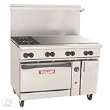 Looking for Vulcan-Hart 48-S-2B-36G-N 48" Open Burner/Griddle Top Endurance Restaurant Range Great Deals, Online shopping, Vulcan-Hart 48-S-2B-36G-N 48" Open Burner/Griddle Top Endurance Restaurant Range Read Product Review, Features, Specs, Description, Check Prices Update & More satisfactory for this item reviews! Vulcan-Hart 48-S-2B-36G-N 48" Open Burner/Griddle Top Endurance Restaurant Range The 48" Open Burner/Griddle Top Restaurant Range (48-S-2B-36G-N) is a superior unit based on the reputation of Vulcan-Hart dependability and innovation. The range top is a standard open burner gas range with heavy-duty cast grates which lift off to facilitate cleaning. To the right of the burners, a 36-inch manual griddle turns the unit into a multi-functional piece of equipment. The range sits atop a baker’s standard oven complete with 2 oven racks, as well as a 12" storage cabinet base. Made entirely from stainless steel, this mid-sized unit is created for high-traffic establishments with the need for a smaller footprint. Vulcan-Hart’s legendary precision has been a primary part of the business’ ideals for years, and this quality range can benefit your operation as well. Features: 2 racks included, 4 rack positions, Fully MIG welded frame, Stainless steel construction, Heavy-duty lift-off cast grates, Oven thermostat adjusts from 250° F – 500° F. Benefits: Baker’s standard oven fits full sheet pans, Cool-touch control knobs and oven handle, High shelf lifts off depending on your application, Extra-deep pull-out crumb tray facilitates cleanliness, Extra-deep back grates accommodate larger pots and pans, Oven controls mounted in insulated side compartment to stay in cool zone. Additional Considerations: This product is not intended for home use, Specify altitude if unit will be placed above 2, 000 feet, For additional options and accessories, contact a sales representative at 1-877-877-4379 Monday through Friday 6: 30am – 6: 00pm MST. .
