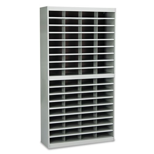 | Safco® - Steel/Fiberboard E-Z Stor Sorter, 72 Sections, 37 1/2 x 12 3/4 x 71, Gray - Sold As 1 Each - Store and organize forms, catalogs, brochures. #Safco® - Steel/Fiberboard E-Z Stor Sorter, 72 Sections, 37 1/2 x 12 3/4 x 71, Gray Store and organize forms, catalogs, brochures. 3" high filing space per compartment. Quality-built with steel frame, shelves and vertical dividers and solid fiberboard back. Interlocking design of the shelves and dividers add extra strength to hold up to the heaviest load. Literature Sorter Type: Open Front; Number of Compartments: 72; Compartment Size: Letter. - Material(s): Fiberboard Back/Steel