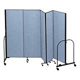 Screenflex 5' H Freestanding Portable Partition - Five Panels (9' 5" L)Divide large classrooms into smaller, semi-private areas with Screenflex's 5' High Freestanding Portable Partition. Self-leveling casters make it easy to move and arrange into various configurations. Locking hinges on each panel keep it firmly in place. Simply grab the steel frames on the end panels to unfold, fold and move the partition. Optional multi-unit connectors allow you to attach several partitions at the end frames. Choose fabric or vinyl tackable panels that absorb up to 45 percent of sound. Fabric panels offer better sound absorption and vinyl panels are easier to clean.