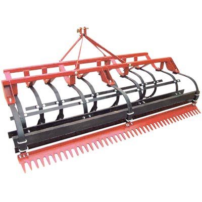 Grower Equipment Tiller Rake - 4ft. Length?Durable tines and reversible scarifying shovels quickly turn hard, compacted ground into a perfect seedbed. Can be changed from a scarifier to a grader, spreader or finishing rake simply by adjusting the top link. Heavy-duty double springs. Great for landscape construction, fire lanes, nursery weed control, soil preparation for sod, and grooming horse arenas, baseball infields and beaches. Truck ship. U.S.A. Factory shipped. Hitch Type: 3-pt., Working Width (in.): 48